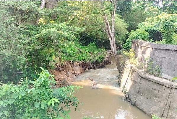 Menurut salah satu warga sekitar, Bahtiar Effendy hal ini sudah terjadi sejak 10 tahun lalu. Lantaran sungai tersebut tidak memiliki turap atau dinding penahan, sehingga sungai tidak mampu menahan debit air yang menyebabkan longsor.