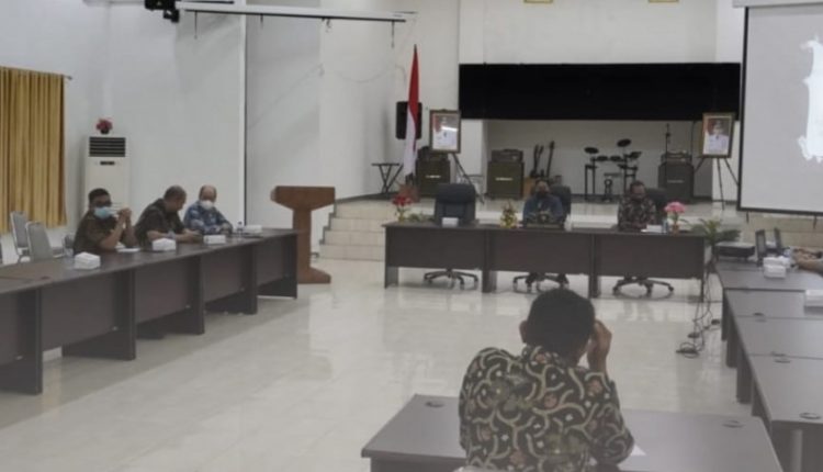 Kepala Dinas (Kadis) Sosial Kaltim, HM Agus Hari Kesuma diwakili Kabid Pelrehsos, Moh Suhaedy memimpin rapat di Aula H Asran Bulkis Dinas Sosial Provinsi Kalimantan Timur, Jalan Basuki Rahmat Nomor 76, Samarinda, Senin (21/02/22).