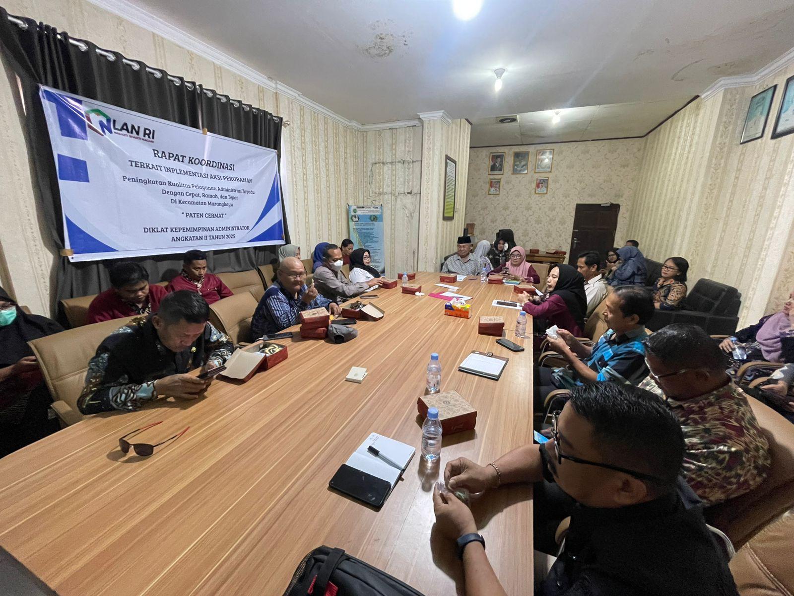 Rapat tersebut dipimpin oleh Camat Marangkayu, A. R. Ambo Dalle, dengan dihadiri Sekretaris Camat Rahmatang, perwakilan Polsek Marangkayu, Kasi Kesra Lili Herlina, Kepala UPTD Pendidikan, perwakilan Puskesmas, PMI, serta perwakilan desa se-Kecamatan Marangkayu.