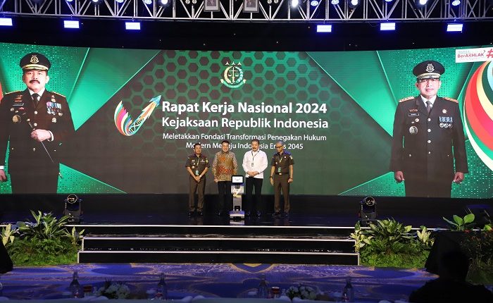 Saskindo Media, Bogor – Rapat Kerja Nasional (Rakernas) Kejaksaan RI 2024 menghadirkan beberapa narasumber antara lain: Menteri PPN/Kepala Bappenas Suharso Monoarfa, Wakil Menteri Keuangan Suahasil Nazara dan Juru Bicara Badan Siber dan Sandi Negara (BSSN) Ariyandi Putra serta Ahli Hukum Luar Negeri Prof. Hikmanto Juwana, Ph.D.