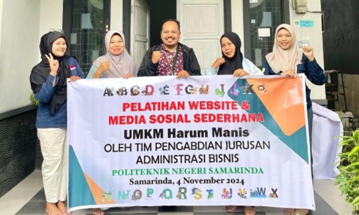 Saskindo Media, Samarinda — Dosen Tim Pengabdian Kepada Masyarakat Politeknik Negeri Samarinda (PKM Polnes) melaksanakan Pelatihan Website Sederhana, Blogger dan Media Sosial pada UMKM Harum Manis.