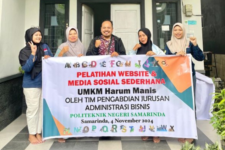 Saskindo Media, Samarinda — Dosen Tim Pengabdian Kepada Masyarakat Politeknik Negeri Samarinda (PKM Polnes) melaksanakan Pelatihan Website Sederhana, Blogger dan Media Sosial pada UMKM Harum Manis.