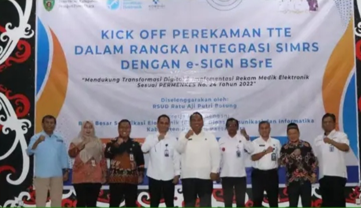 Saskindo Media, Penajam Paser Utara – Pemerintah Kabupaten Penajam Paser Utara (PPU) menggelar kick off perekaman tanda tangan elektronik (TTE) dalam rangka integrasi Sistem Informasi Manajemen Rumah Sakit (SIMRS) dengan e-SIGN BSeR. Langkah ini bertujuan mendukung transformasi digital dan penerapan rekam medis elektronik sesuai Peraturan Menteri Kesehatan (Permenkes) No. 24 Tahun 2022.
