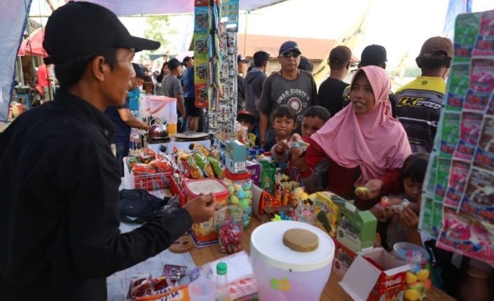 Winadi, salah satu pedagang yang menjajakkan dagangannya tak jauh dari lokasi acara. Dari makanan ringan, minuman hingga mainan anak-anak.
