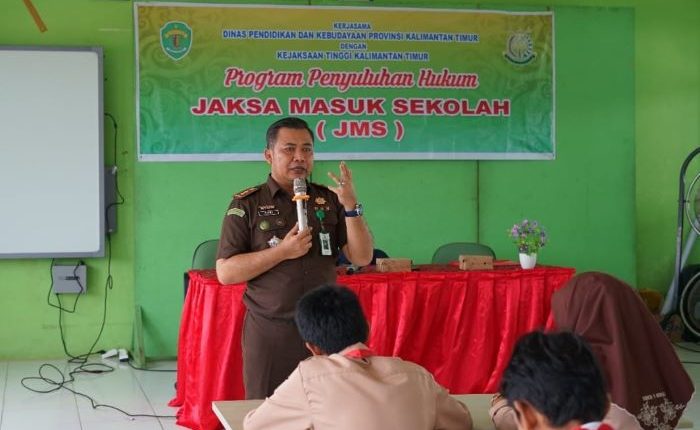 Toni Yuswanto – Kepala seksi penerangan hukum pada Asisten Intelijen Kejati Kaltim sebagai narasumber kegiatan JMS mengatakan Jaksa Masuk Sekolah atau disingkat JMS merupakan program Kejaksaan Agung RI dan jajaran korps Adhyaksa diseluruh wilayah Indonesia yang lahir berdasarkan Keputusan Jaksa Agung RI Nomor: 184/A/JA/11/2015 tanggal 18 Nopember 2015 tentang Kejaksaan RI mencanangkan program Jaksa Masuk Sekolah.