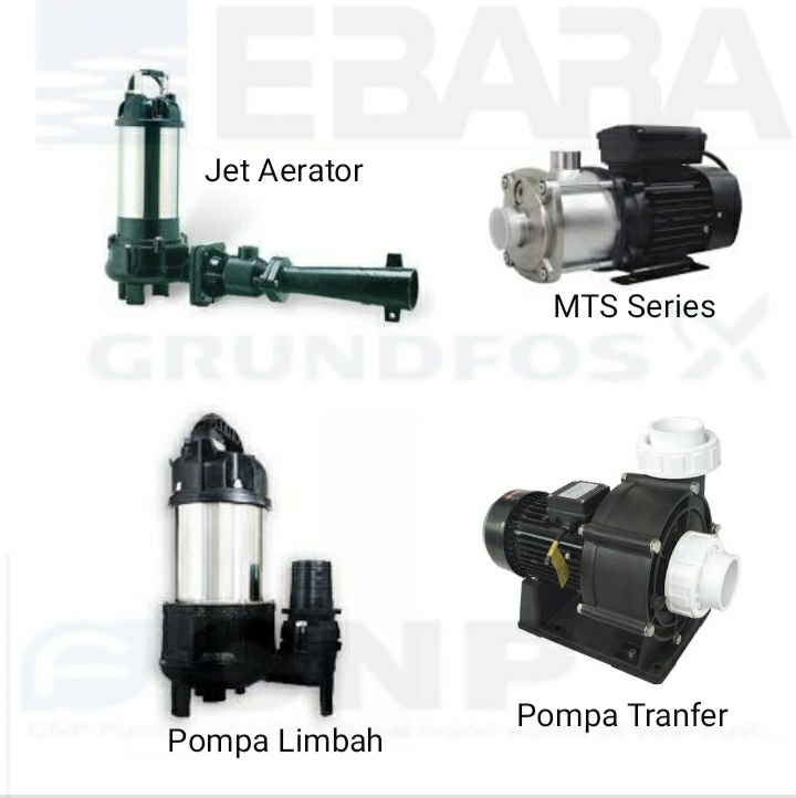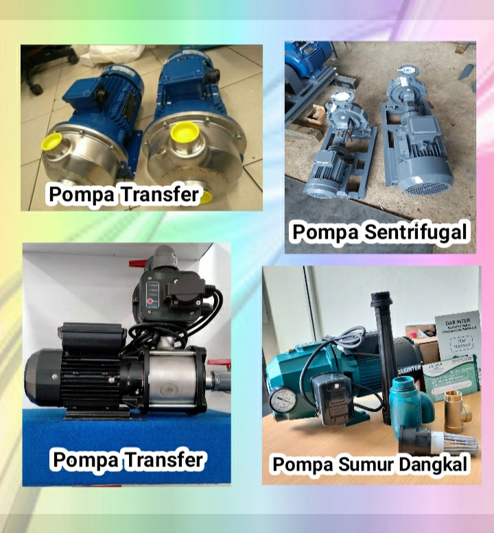 Kami menyediakan dan menjual berbagai macam pompa air, baik pompa air untuk keperluan rumah tangga (pompa air sumur dangkal, pompa air sumur dalam, pompa kolam, pompa kolam renang, pompa pendorong / booster) dan juga pompa industri (termasuk pompa celup kuantitas besar, pompa sewage, pompa dorong tenaga besar, submersible / pompa satelit, pompa submersible tenaga surya, pompa sentrifugal, pompa vertikal multistage, pompa hydrant dll), dan terdapat pompa air lainnya seperti pompa solar, pompa air tenaga bensin, dan lain-lain.