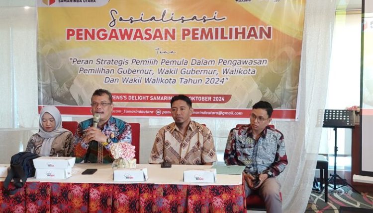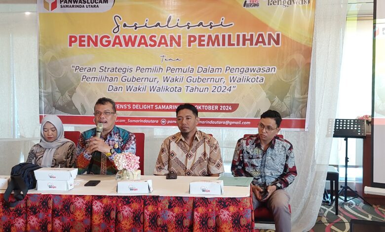 Saskindo Media, Samarinda – Panitia Pengawas Pemilu Kecamatan (Panwaslucam) Samarinda Utara menggelar sosialisasi pengawasan pemilihan dengan tema “Peran Strategis Pemilih Pemula dalam Pengawasan Pemilihan Gubernur, Wakil Gubernur, Walikota dan Wakil Walikota Tahun 2024.” Acara tersebut berlangsung di Yen’s Delight Cafe, Jalan Juanda 5, Samarinda Ulu, Kamis (3/10/2024).