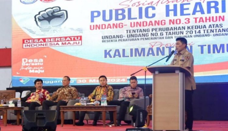 Saskindo Media, Kutai Kartanegara – Mewakili Bupati Kutai Kartanegara (Kukar) Sekretaris Daerah (Sekda) Kukar, Sunggono menghadiri Pembukaan Sosialisasi dan Public Hearing Undang-Undang (UU) Nomor 3 Tahun 2024 Perubahan Kedua Atas UU Nomor 6 Tahun 2014 Tentang Desa, Kamis (30/5/24) di Gedung Bela diri Stadion Aji Imbut Tenggarong Seberang.