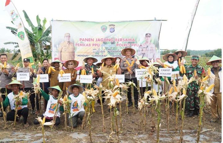 Salah satu bentuk nyata dilakukan melalui sinergi antara Kelompok Tani Jagung “Sawit Lestari” di Desa Giri Mukti dengan Polres PPU. Kegiatan ini didukung penuh oleh Pemerintah Kabupaten PPU, Kodim 0913 PPU, serta Dinas Pangan, Tanaman Pangan, dan Holtikultura Provinsi Kalimantan Timur. Bertempat di lahan seluas 10 hektare di Jalan Raya Silkar, Giri Mukti, panen jagung bersama pun digelar.