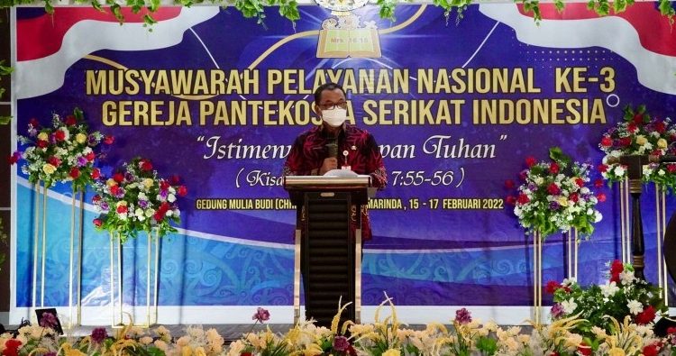 Saskindo Media, Samarinda – Musyawarah Pelayanan Nasional (Mupalnas) III Gereja Pantekosta Serikat Indonesia (GPSI) resmi dibuka yang ditandai dengan pemukulan gong dan penyematan tanda peserta.