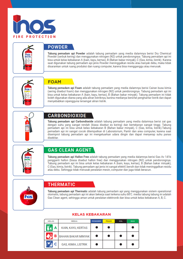 Pusat Penjualan Tabung Pemadam Api Terbaik. Tabung Pemadam Api INOS adalah solusi kebutuhan tabung pemadam api di Indonesia, karena memiliki kualitas tinggi akan tetapi memiliki harga yang sangat kompetitif, sehingga mampu mengcover kebutuhan safety baik di Perkantoran, Pabrik, Pergudangan, Rumah sakit, sekolah, ruko serta perumahan.