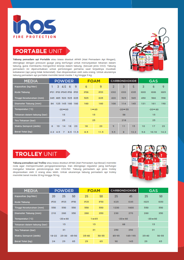 BERBAGAI PILIHAN UKURAN TABUNG: Tersedia berbagai ukuran Tabung Pemadam Api mulai 1 kg hingga 9 kg untuk jenis Portable & ukuran 20 kg hingga 50 kg untuk jenis Trolley.