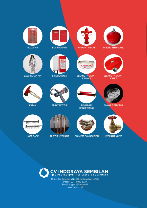 INOS diproduksi oleh CV INDORAYA SEMBILAN perusahaan yang bergerak di bidang penjualan Alat Pemadam Api khususnya Tabung Pemadam Api, Isi Ulang Tabung Pemadam Api, Hydrant murah dan peralatan – peralatan safety. Didukung dengan tenaga ahli yang handal dan berpengalaman, kami siap memenuhi kebutuhan safety baik untuk instansi pemerintah, perusahaan swasta maupun untuk kebutuhan industri di seluruh Indonesia.