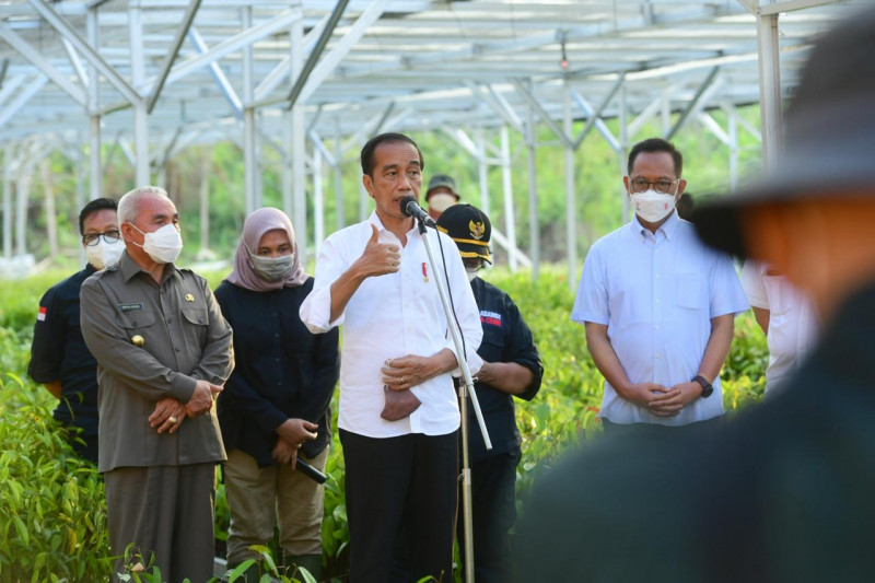 Setelah peninjauan, Presiden menegaskan bahwa pemerintah berkomitmen mengawali pembangunan Ibu Kota Nusantara (IKN) dengan merehabilitasi hutan.