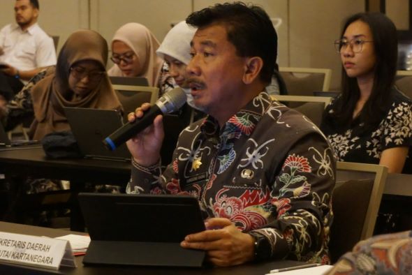 Saskindo Media, Jakarta – Sekretaris Daerah (Sekda) Kabupaten Kutai Kartanegara (Kukar) Sunggono menyampaikan paparan Bupati Edi Damansyah pada Rapat Koordinasi (Rakor) Lintas Sektor dalam rangka pembahasan Rancangan Peraturan Kepala Daerah (Raperkada) terkait Rencana Detil Tata Ruang (RDTR) di hotel Grand Sheraton Jakarta, Rabu (20/3/2024).
