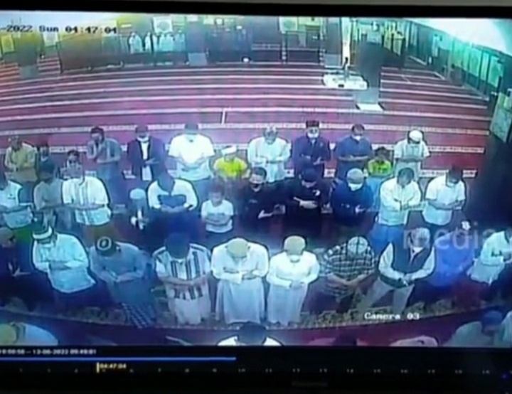 Berdasarkan rekaman kamera CCTV yang ada di Masjid Fathul Khoir memperlihatkan Detik-detik meninggalnya korban, saat mulai terjatuh di rakaat pertama.