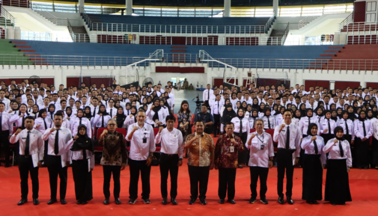 Saskindo Media, Penajam Paser Utara – Pemerintah Kabupaten (Pemkab) Penajam Paser Utara (PPU) menggelar acara penyerahan Surat Keputusan (SK) pengangkatan Calon Pegawai Negeri Sipil (CPNS) dan Pegawai Pemerintah dengan Perjanjian Kerja (PPPK) Formasi Tahun 2024, sekaligus pengambilan sumpah jabatan bagi PPPK. Kegiatan ini berlangsung pada Kamis (22/5/2025) siang di Dome Anden Oko, dengan total 171 SK CPNS dan 525 SK PPPK yang dibagikan. Turut hadir dalam acara tersebut Wakil Kepala Badan Kepegawaian Negara (BKN), Haryomo Dwi Putranto.