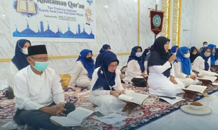 Kegiatan Khataman Al-Qur’an dan penyerahan santunan dilakukan di Aula Panda TP PKK Provinsi Kaltim Jalan M Yamin Samarinda, Rabu (27/4/2022).