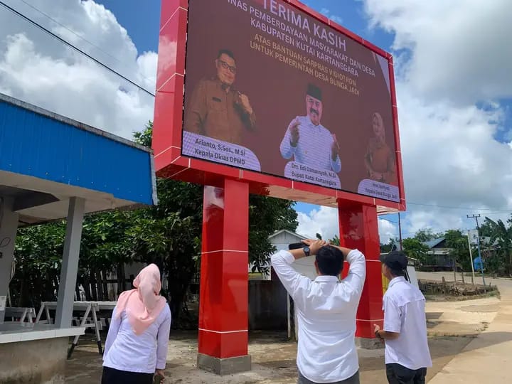 Inna menjelaskan, videotron tersebut baru dipasang sekitar satu bulan lalu. Selain itu, DPMD Kukar juga memberikan bantuan lain seperti meja dan kursi untuk perangkat desa, kursi rapat, televisi berfungsi sebagai digital signage, serta lemari arsip untuk mendukung administrasi desa.