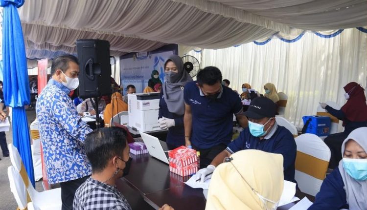 Saskindo Media, Samarinda – Wakil Gubernur Kaltim, Hadi Mulyadi meninjau pelaksanaan vaksinasi booster bagi karyawan dan karyawati perbankan yang digelar di halaman Kantor PWBI Kaltim, Kamis (31/3/2022).